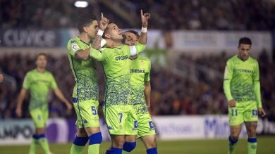 Así, el Racing dispuso de dos tímidas ocasiones para empatar. Primero con un cabezazo de Quique Rivero, que se fue alto; y, a continuación, con una jugada personal de Enzo Lombardo, que él mismo concluyo con un derechazo desde la frontal, que atajó Joel sin problemas.