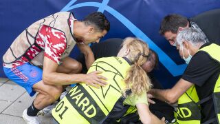 Cristiano Ronaldo noquea a una mujer del equipo de seguridad de un pelotazo y corre a ayudarla