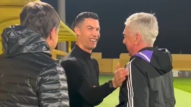 Cristiano Ronaldo visita al Real Madrid en Riad: así fue su cariñoso saludo con Ancelotti y Roberto Carlos