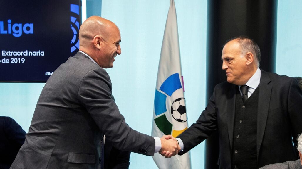 Luis Rubiales, presidente de RFEF y Javier Tebas, presidente de LaLiga, se han reunido junto a Irene Lozano durante más de ocho horas y han llegado a un acuerdo, tal y como ha informado el Consejo Superior de Deportes en un comunicado.