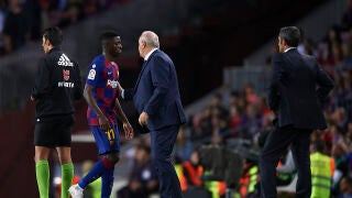 Dembelé acabó expulsado en el partido del Barça contra el Sevilla por, según el acta, decirle a Mateu Lahoz que es "muy malo". Ernesto Valverde lo pone en duda: "Amí me cuesta hablar con él".