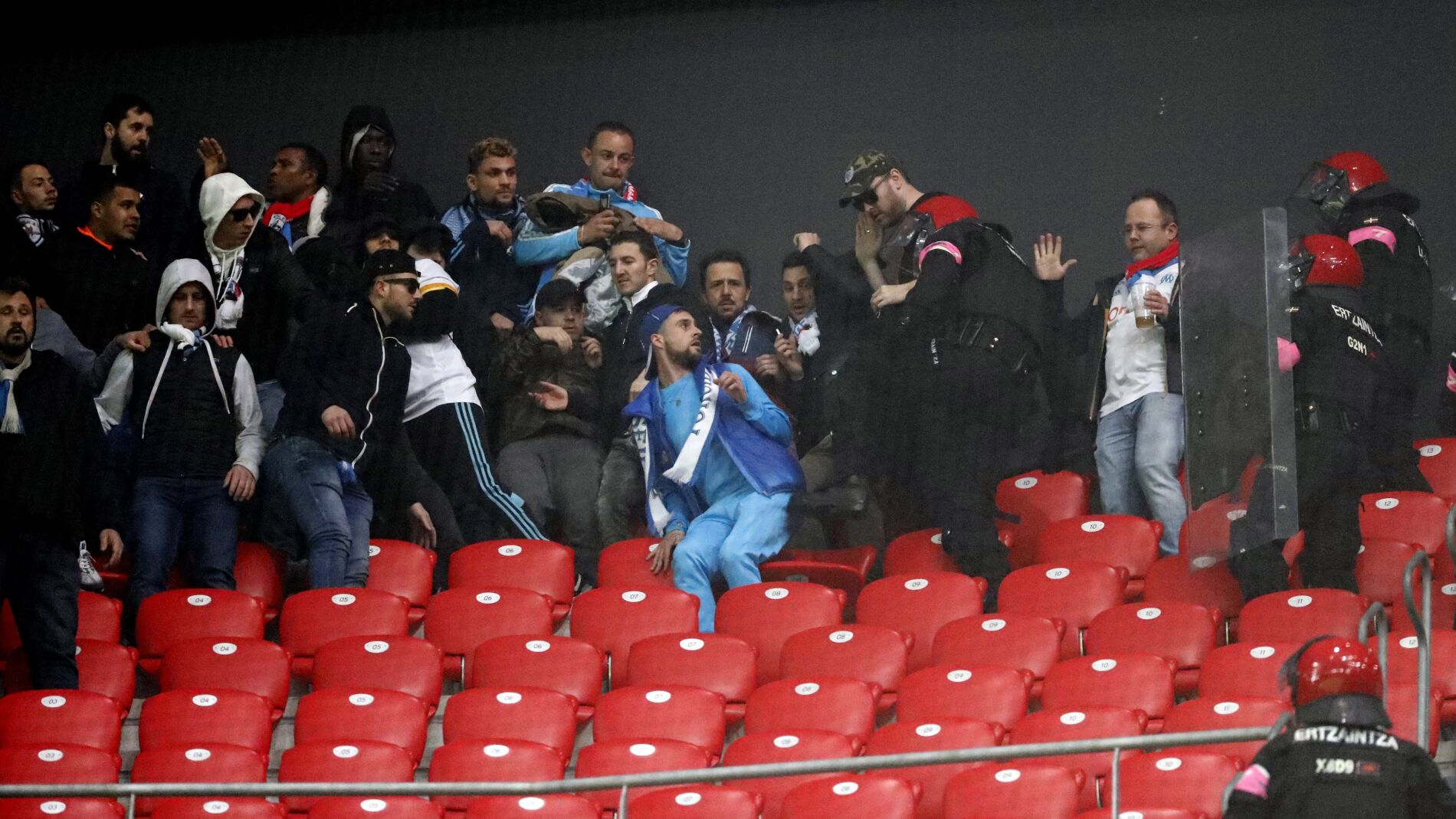 La Ertzaintza ha detenido hasta el momento a tres hinchas del Olympique de Marsella por protagonizar los incidentes en el interior del campo de fútbol de San Mamés en los que han resultado heridos dos vigilantes jurados, uno de ellos en el cuello tras ser atacado con un arma blanca, según ha informado el Departamento vasco de Seguridad a Europa Press.