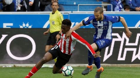 A pesar de las pocas ocasiones, los vizcaínos dominaban el centro del campo y se acercaban a los dominios de Fernando Pacheco a través de las jugadas a balón parada. Iñaki Williams tuvo la ocasión más clara del encuentro, cuando remató al larguero una cesión de Iker Muniain en el minuto 19, después un gran desmarque del "diez" navarro, que jugó entre las líneas de un Alavés bien plantado.