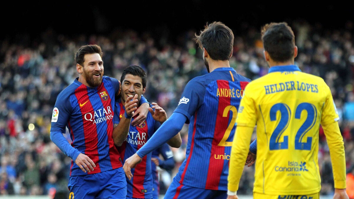 Partido perfecto para el Barça ante Las Palmas. Los culés superaron de forma sencilla, directa y rápida a los canarios y sumaron tres puntos importantísimos en su lucha en Liga. El 5-0, con doblete de Suárez y goles de Arda, de Aleix Vidal y de un Messi sublime, es muestra suficiente de la superioridad mostrada por el equipo de Luis Enrique ante un cuadro amarillo que apenas dio señáles de vida en la Ciudad Condal.