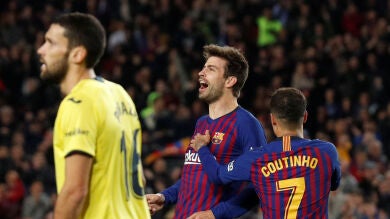 El Barcelona se impuso al Villarreal en el Camp Nou con los goles de Piqué y Aleñá.