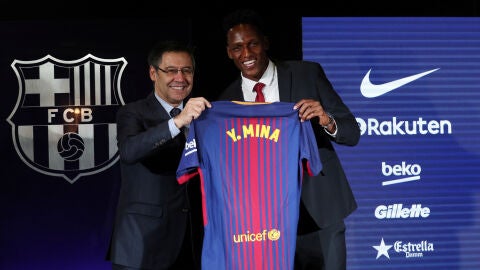 Yerry Minaya ha sido presentado como jugador del Barcelona y agradecido a todos los que hicieron posible su fichaje por el Barcelona. "Nunca dudé en venir aquí y es un sueño para mí", indicó Yerry Mina.