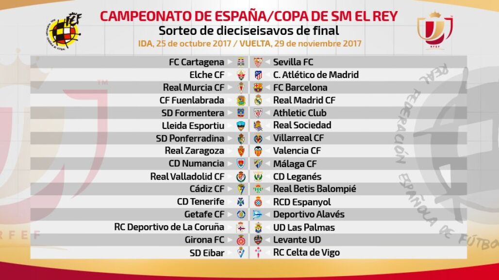 Real Madrid, Barcelona, Atlético, Sevillay todos los equipos de Primera División ya conocen sus rivales en dieciseisavos de final de la Copa del Rey. Así queda el sorteo del trofeo.