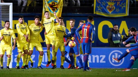 El argentino Leo Messi evitó la derrota del Barcelona ante el Villarreal (1-1) con un gol de falta directa en el minuto 90 en un partido de dominio barcelonista pero en el que no encontró soluciones para superar la buena disposición sobre el campo del equipo de Fran Escribá. El estreno del nombre del Estadio de La Cerámica vivió un intenso duelo de fútbol en el que ambos equipos exhibieron sus armas para llevarse el triunfo aunque sin suerte para ninguno de los dos equipos que terminan la jornada en la tercera posición, el Barcelona, y la quinta, el Villarreal.