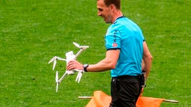 En medio del partido que enfrentaba al Athletic de Bilbao y al Levante un dronha caído en el césped de San Mamés en el minuto 67, suceso que ha obligado al árbitro a parar el encuentro unos segundos hasta retirar el aparato del terreno de juego. El árbitro principal recorrió el campo con el dron en la mano y se lo entregó al delegado de campo.