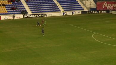 El portero del UCAM Murcia salió de portería a por un balón dividido y el choque contra un compañero le provocó una grave lesión. La imagen de la pierna de Germán es dura, pero más aún lo es el sonido de la tibia y el peroné al romperse. Por si fuera poco, el colegiado saca amarilla al guardameta cuando está tendido en la camilla. El UCAM ganó al San Fernando 2-1.