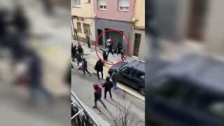 Duras imágenes: brutal paliza a un aficionado en la batalla campal entre ultras del Espanyol y el Athletic