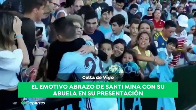 Santi Mina en su presentación con la camiseta del Celta ha protagonizado la imagen de la semana. Un emotivo abrazo con su abuela, situada en la grada, que ha tocado el corazón de todos los aficionados futboleros, y no tan futboleros.