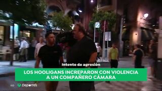 Mariano Valladolid, cámara de Atresmedia, sufrió en primera persona la violencia y sinrazón de los hooligans ingleses. Y es que fue increpado por uno de ellos. Compañeros de otros medios y Silvia Verde, periodista de Atresmedia, tuvieron que intervenir para evitar que la situación fuera a más.
