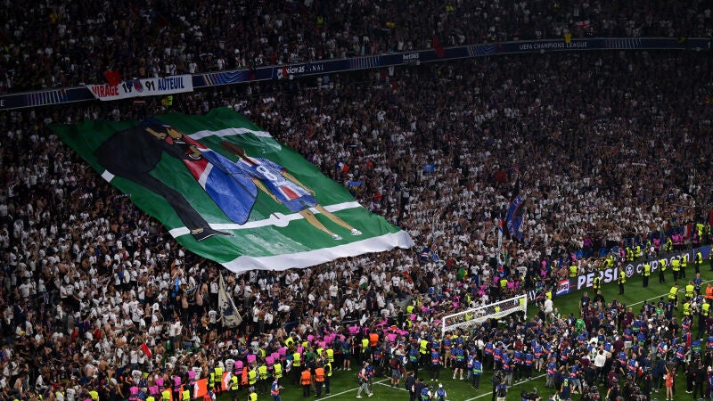 Un gesto que evidentemente estaba preparado en caso de que los galos se proclamaran campeones de Europa, y que tuvo lugar en uno de los fondos justo después de que finalizara el encuentro. Los seguidores que allí se dieron cita desplegaron un mosaico gigante en el que aparecen Luis Enrique y Xana vestidos con los colores del PSG.