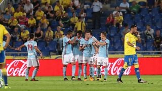 Con un guión similar al de octubre del año pasado (0-3 y un jugador menos sobre el campo), el Celta contuvo los ataques de una Unión Deportiva que arriesgó ya con todo su arsenal, con la entrada de Vitolo, y cerrando atrás con tres defensas, pero ni por acumulación de atacantes logró acabar con su divorcio con el gol.
