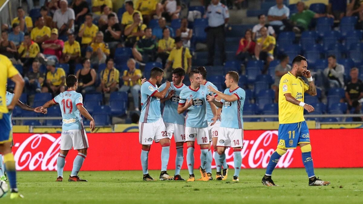 Las Palmas comenzó mejor el partido y tuvo ocasiones en balones aéreos que casi siempre ganó a la defensa celeste. Curiosamente, los de Ayestarán apenas exigieron a Wass, improvisado lateral derecho por las bajas.