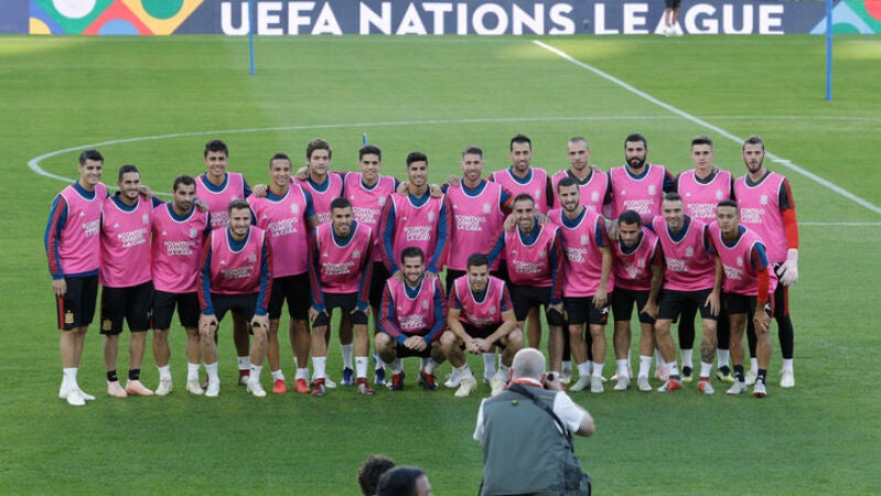Según la Federación Española de Fútbol en un comunicado.Con motivo del día internacional contra el cáncer demama, el próximo 19 de octubre, la RFEF ha organizado una serie de actos para visibilizarlo y prevenirlo. Entre ellos el citado entrenamiento con petos rosas del equipo nacional absoluto.