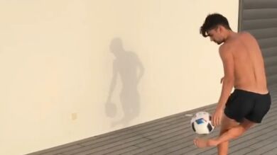 Enzo Zidane continuó el reto deMarcelo y Neymary se exhibió. El hijo mayor de Zidane demostró su calidad dando toques contra una pared y controlando el rebote de espuela.