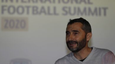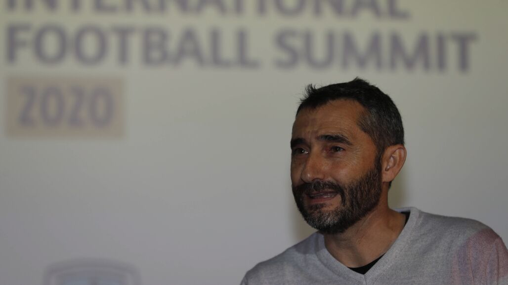 Valverde acudió al IV Bilbao International Football Summit (BIFS'20), un congreso que reúne en los últimos años en la capital vizcaína a destacadas personalidades del fútbol de elite y que se celebra este jueves en la zona VIP de San Mamés, para recibir el Premio Referente que le entrególa organización del evento.