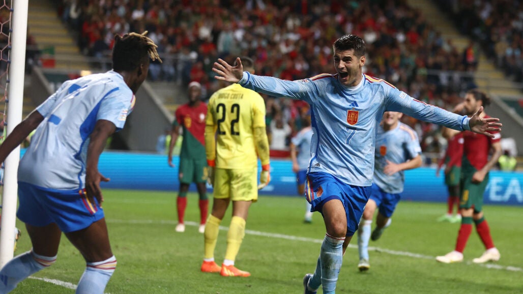 La selección española de fútbol firma su pase a la fase final de la Nations League con un gol de Morata en el minuto 87. Portugal dominó durante 70 minutos pero se topó con un inmenso Unai Simón. La entrada de Gavi, Pedri y Nico Williams cambiaron el partido.