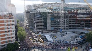 El ambiente entre los aficionados del Real Madrid es el de una final, también motivado por la euforia tras el alirón el pasado fin de semana. No solo se han repartido en la plaza de los Sagrados Corazones, también los aledaños del estadio, la Castellana o la línea 10 de Metro se han teñido de camisetas blancas.
