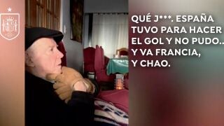 "La española cuando besa... besa de verdad", canturreaba en medio del partido este entrañable anciano. Aunque el mejor momento del vídeo llega cuando el árbitro señalaba el final del partido. ''¡Viva España! España es la mejor!'', cantaba emocionado José ante la asombrada mirada de su nieto.