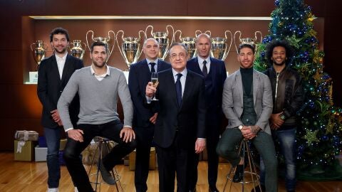 El presidente del Real Madrid felicitó las fiestas a todos los seguidores blancos junto a Zidane, Pablo Laso, Sergio Ramos, Marcelo, Felipe Reyesy Sergio Llull. "2017 ha sido un año que los madridistas no olvidaremos nunca", indicó Florentino.
