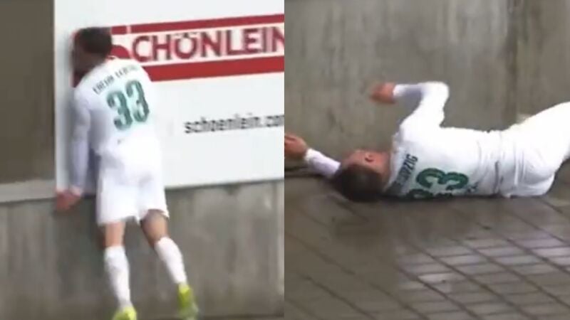 La imagen es terrible. Denis Japel, delantero del Hempy Leipzig, acabó inconsciente después de perseguir un balón y acabar estrellándose contra un muro en un partido de la cuarta división alemana.