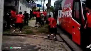 Lo nunca visto en el planeta fútbol: los futbolistas brasileños del River Atlético se bajaron del autobús para enfrentarse a sus propios aficionados.