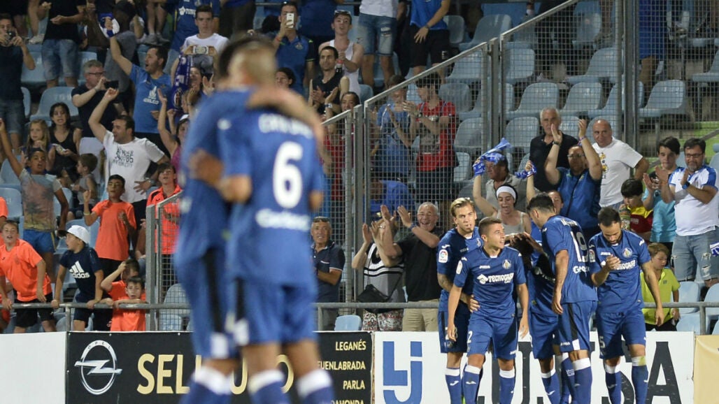 El Getafe está a dos partidos de volver a Primera división. El equipo azulón, que había empatado a dos ante el Huesca en la ida, se impuso por 3-0 a los oscenses en un encuentro en el que Cala, Pacheco y Fuster fueron los goleadores.