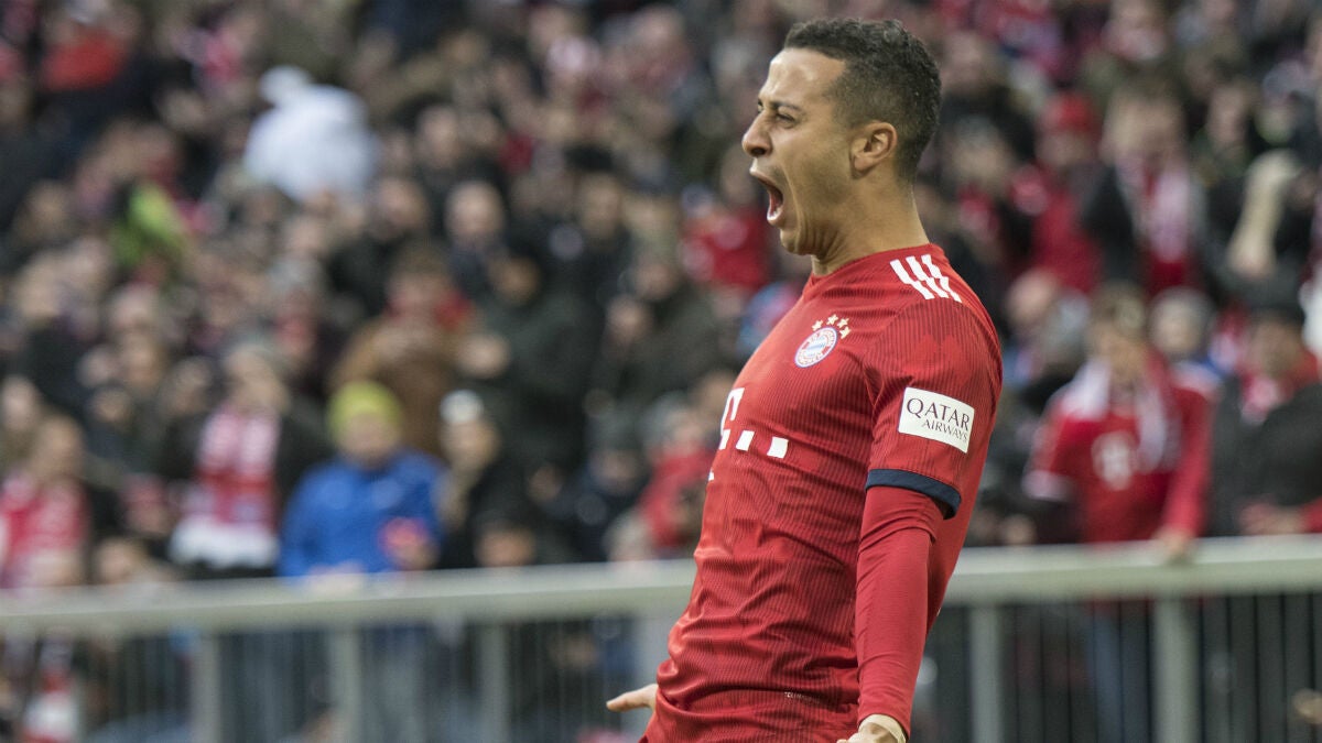 La resistencia del Stuttgart duró menos de 5 minutos. En la primera jugada de ataque del Bayern, que hasta ese momento había circulado el balón pacientemente, Thiago Alcántara abrió el marcador con un remate dentro del área tras recibir un pase corto de Robert Lewandowski,