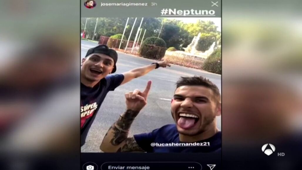 Antoine Griezmann y Lucas Hernández lideraron la fiesta del Atlético de Madrid en el vestuario tras ganar la Supercopa de Europa. Lucas y Giménez siguieron con la celebración y visitaron la fuente de Neptuno al llegar a Madrid.