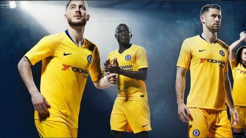 El Chelsea desveló su tercera equipación, de color amarillo, con la imagen del belga Eden Hazard, el francés N'Golo Kanté y el brasileño Willian. Los tres futbolistas están entre las rumoreadas posibles ventas del Chelsea en este mercado veraniego.