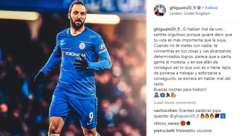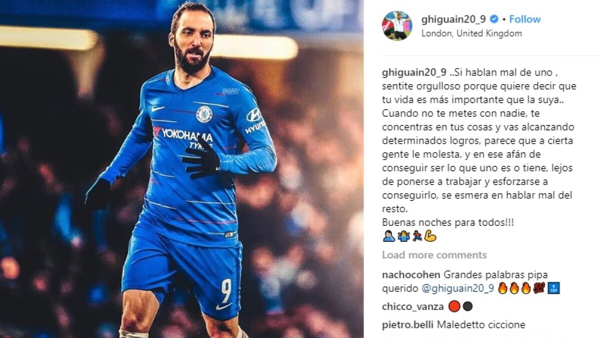 Gonzalo Higuaín, delantero del Chelsea, ha respondido a través de su instagram al Ministro de Interior italiano Matteo Salvini, tras calificarle de "mercenario" y asegurar que estaba "contento" de que se hubiera marchado de Milán.