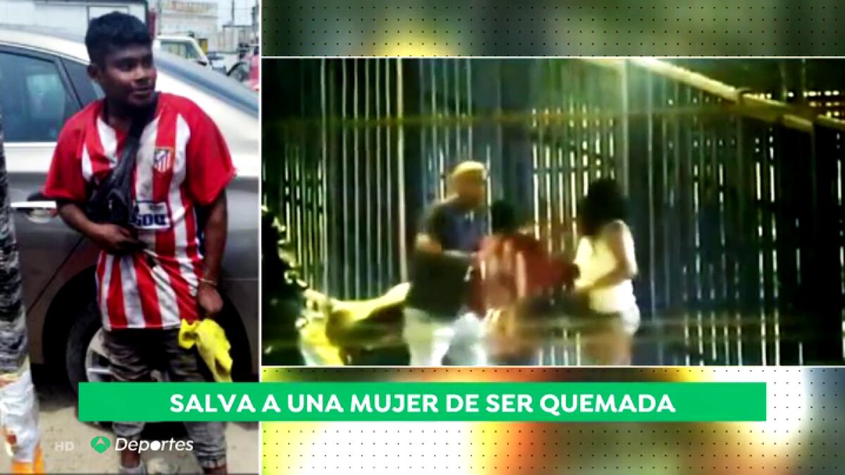 Un hincha peruano del Atlético salva a una mujer de ser quemada por su pareja en Perú