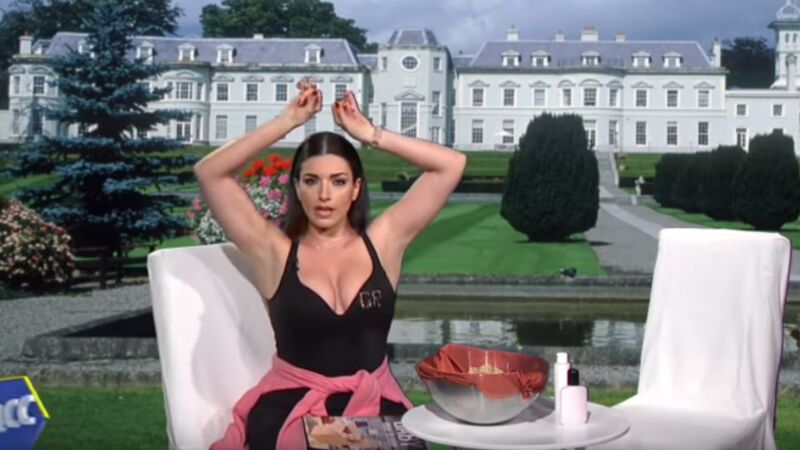 "Esta casa es el garaje para los coches del señor Ronaldo", dice mientras aparece una mansión de fondo. Además, hace publicidad en Instagram en pleno programa.