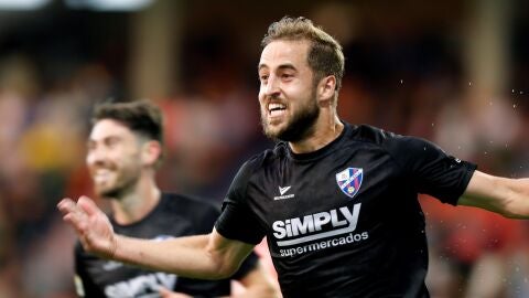 El partido se les puso de cara pronto. Lo mejor que podía pasarles para templar los nervios. Condujo Melero, conectó con Moi Gómez, cedido, curiosamente, por el Sporting de Gijón (rival por el ascenso), y en la frontal del área recogió el balón Gallar con algo de fortuna en el primer toque y un gesto de clase en el segundo para enchufarla con precisión.