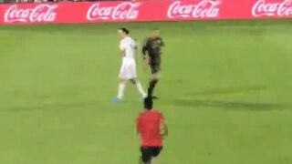 En el vídeo se ve como un aficionado intenta saludarle, Pero la policía se lo impide. Un hecho ante el cual el futbolista permaneció impasible.