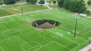 Un impresionante socavón se traga un campo de fútbol en Illinois