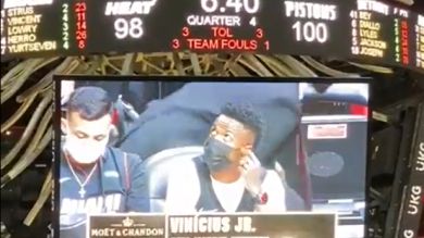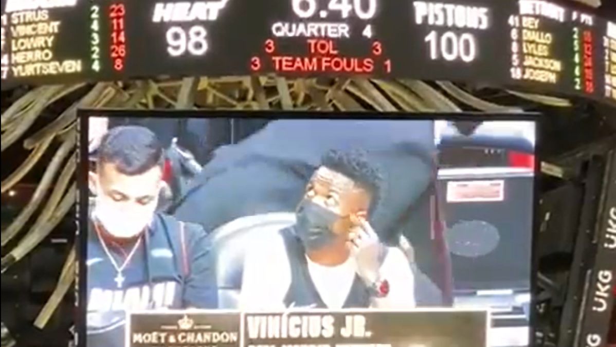 Los aficionados de los Heat o no le conocen o simplemente no estaban atentos a las pantallas. Aun así, Vinicius Jr hizo un gesto con la mano en señal de victoria y tampoco llegó a saludar con efusividad al público.