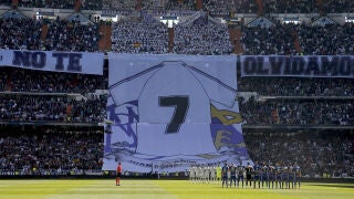 Un cuarto de siglo después de la muerte de Juan Gómez, Juanito, en un accidente de tráfico, el minuto 7, simbólico en el Bernabéu por el número que portó en la camiseta del Real Madrid el jugador malagueño, sonó más fuerte que nunca durante 60 segundos emocionantes que recordaron a un mito del madridismo.