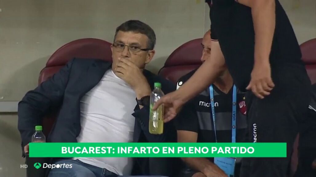 En pleno partido de la liga rumana el entrenador del Dinamo de Bucarest Eugen Neagoe sufrió un infarto. Afortunadamente los médicos actuaron con rapidez y está estable.