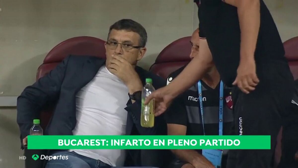 El entrenador del conjunto rumano, Eugen Neagoe, respiraba con dificultad y fue atendido enseguida por los servicios médicos. Un futbolista del mismo equipo murió de un infarto hace ahora tres años.