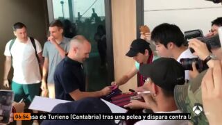 Iniesta llega a Japón para incorporarse al Vissel Kobe: fue recibido por decenas de aficionados