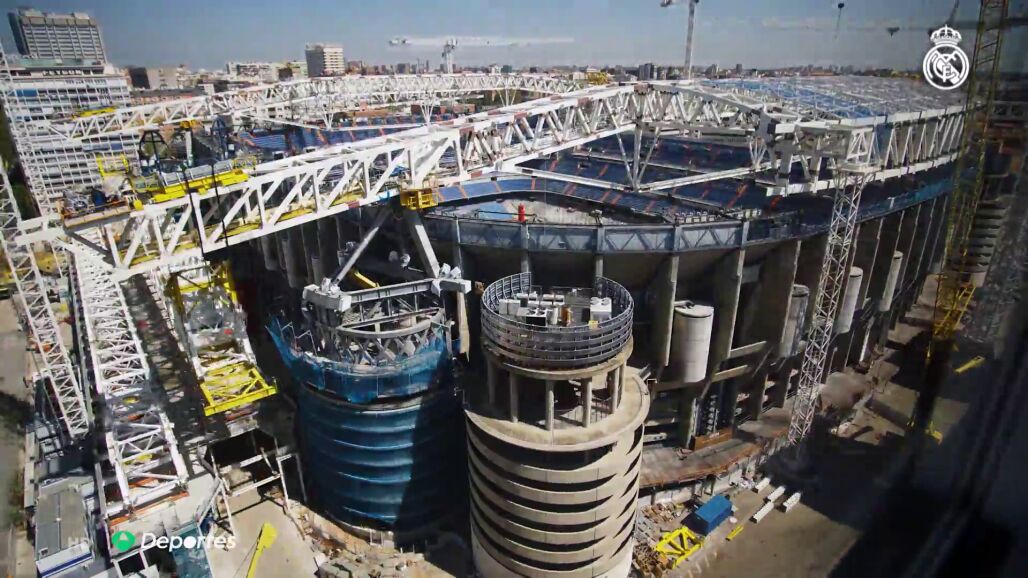 En el vídeo llama la atención las tomas desde un dron sobrevolando el Santiago Bernabéu, permitiendo ver así desde las alturas el estado de los trabajos de remodelación del coliseo blanco.