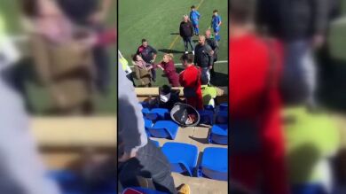 A partir de ahí es cuando la tensión va en aumento y se producen empujones mientras la mujer sigue encarándose con todo el que le recrimina por su actitud. Acto seguido, el árbitro pidió llamar a la Policía para que se hiciera cargo de la situación y devolviera la calma al partido. Algo que no sucedió cuando el partido se reanudó para disputar los últimos minutos. Los asistentes relatan que su actitud fue la de seguir increpando al árbitro y a todo el mundo.