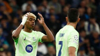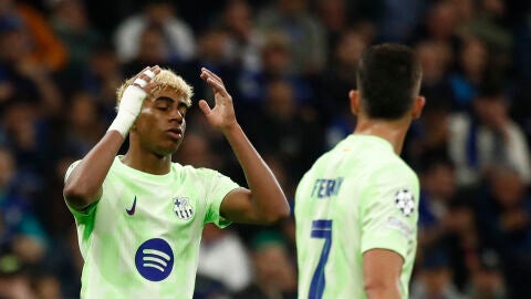 Buen retorno del Barça ahora. En la jugada previa Bastoni frenó la internada de Lamine en el área interista.