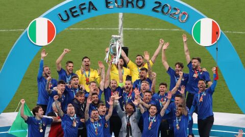 Italia ha ganado en Wembley la Eurocopa tras imponerse a Inglaterra en una tanda de penaltis agónica. Shaw adelantó pronto a los de Southgate y Bonucci empató en la segunda parte. Finalmente, Donnarumma reinó desde los 11 metros.