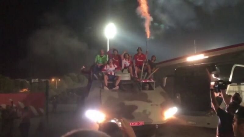 Los jugadores del Estrella Roja celebran el pase a la Champions en un tanque de la guerra de Yugoslavia