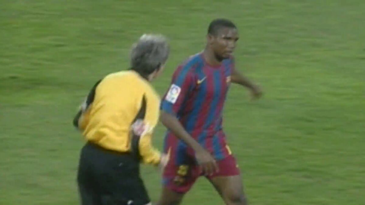 En Zaragoza, Samuel Eto'o intentó abandonar el campo tras recibir gritos que imitaban a un simio. Desgraciadamente algo que fue habitual para él.